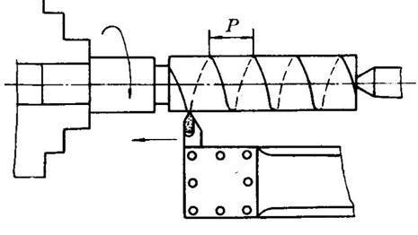 數控車(chē)床與普通車(chē)床車(chē)削螺紋的原理一樣:工件旋轉,車(chē)刀沿工件軸線(xiàn)方向作等速移動(dòng),并保持工件轉一周,刀具移動(dòng)一個(gè)導程的距離,如圖