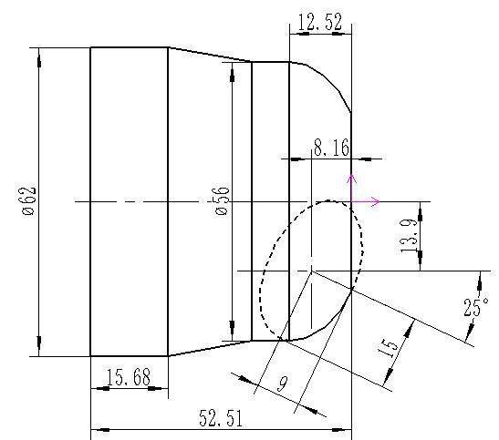 接下來(lái),我以一個(gè)零件圖為例把斜橢圓的加工思路盡可能言簡(jiǎn)意賅的講解一下,帶有斜橢圓零件圖如下所示