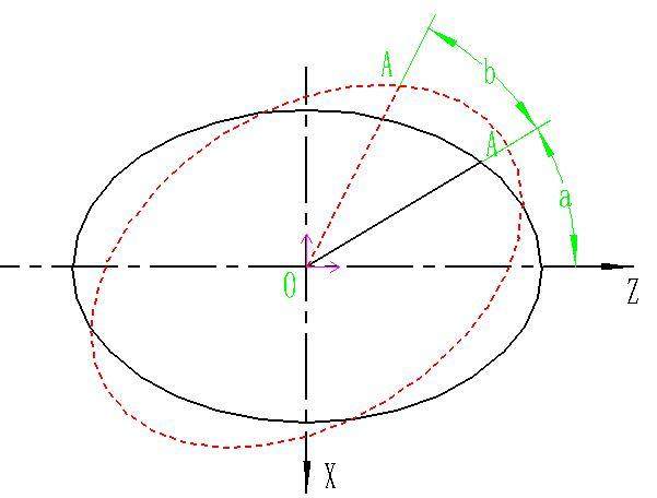 不管橢圓如何旋轉,OA長(cháng)度不變,理解這一點(diǎn),下面就容易了,如點(diǎn)A的X坐標在未旋轉之前為X= b ×sin a,旋轉之后X= b ×sin (a+b),我們可以公式推導一下即可X=Z*SIN(b)+X*COS(b),同理Z坐標也是如此,Z=Z*COS(b)-X*SIN,說(shuō)明一下:為了區分未旋轉之前和旋轉之后,加粗的X、Z為未旋轉之前的。