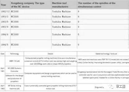 “東芝事件”中,日本東芝公司與挪威康士堡公司出口到蘇聯(lián)的設備詳細清單。