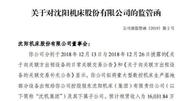 沈陽(yáng)機床分別于2018年12月13日與2018年12月26日披露《關(guān)于向關(guān)聯(lián)方出租設備的日常關(guān)聯(lián)交易公告》和《關(guān)于向關(guān)聯(lián)方出租設備的關(guān)聯(lián)交易補充公告》。