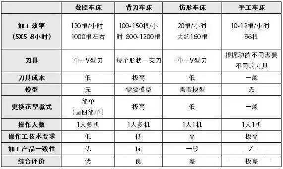 從上述表格可以看出,數控木工車(chē)床是一種性?xún)r(jià)比高、操作簡(jiǎn)單、效率高、各項成本低的一種最適合木制品加工的設備。