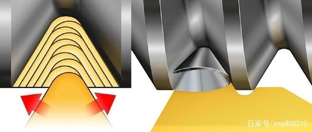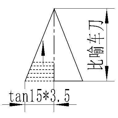 首先你要明白什么是左右借刀的加工工藝,對螺紋刀具有什么樣的要求!這些在此不在一一細說(shuō),簡(jiǎn)單的說(shuō)就是左右進(jìn)刀,間歇進(jìn)給至牙深,每層切深逐漸減少,一直加工到牙底即可!如下圖所示,如果把刀具比喻成一條直線(xiàn),它要加工出一個(gè)三角形螺紋來(lái),勢必要一點(diǎn)一點(diǎn)的走三角形輪廓,也就是通過(guò)徑向每進(jìn)給一個(gè)深度,求出一個(gè)Z值,一直進(jìn)給刀牙槽底29即可。
